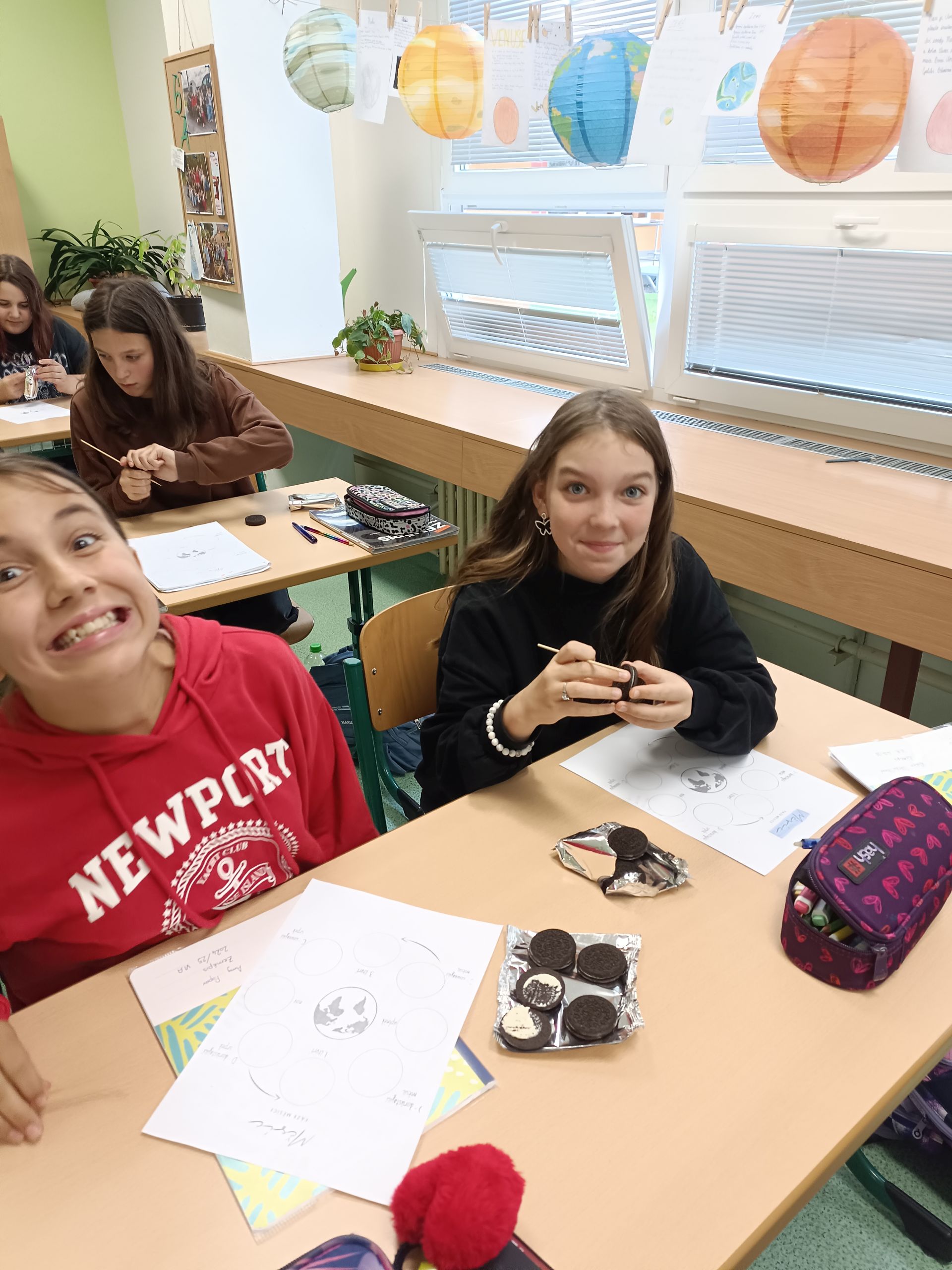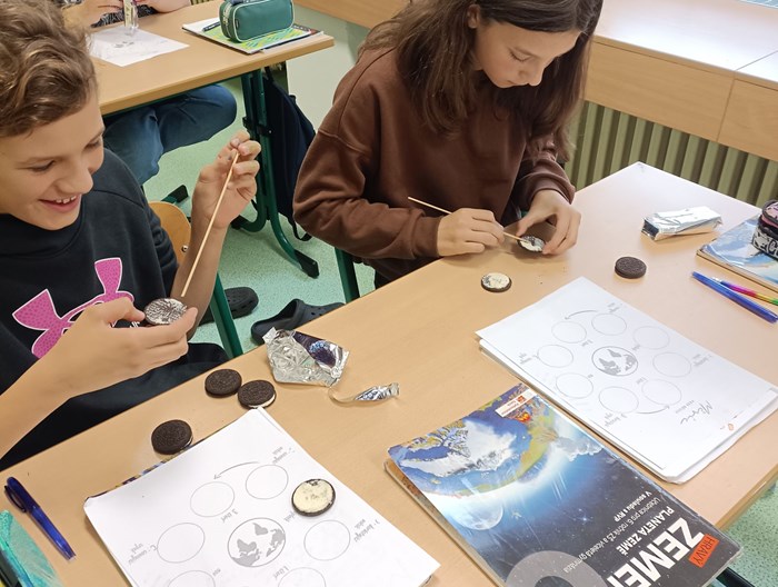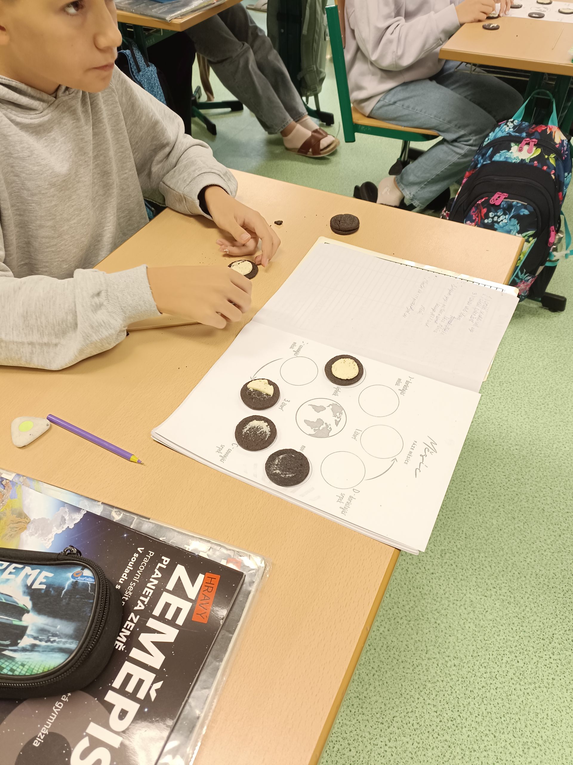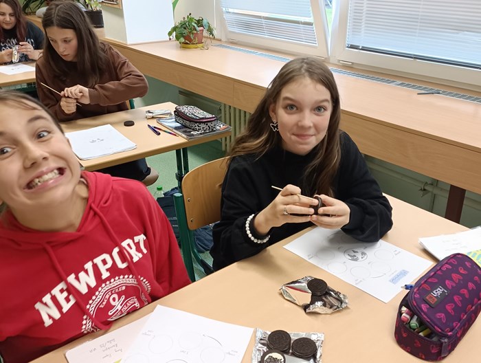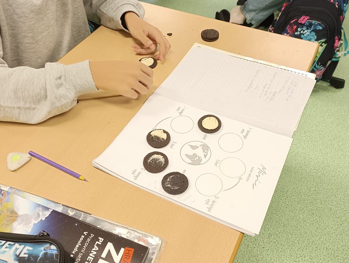 Dnes jsme v 6. A měli opravdu zábavnou hodinu zeměpisu, která se zaměřila na oběh Měsíce kolem Země. V rámci výuky jsme si prostřednictvím kreativní aktivity s Oreo sušenkami vyzkoušeli jednotlivé fáze Měsíce.