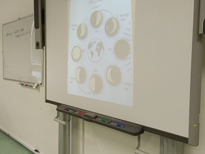 Dnes jsme v 6. A měli opravdu zábavnou hodinu zeměpisu, která se zaměřila na oběh Měsíce kolem Země.