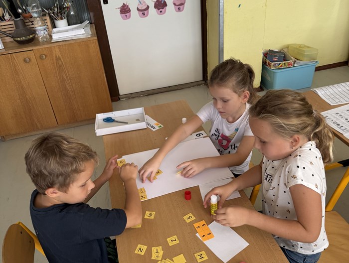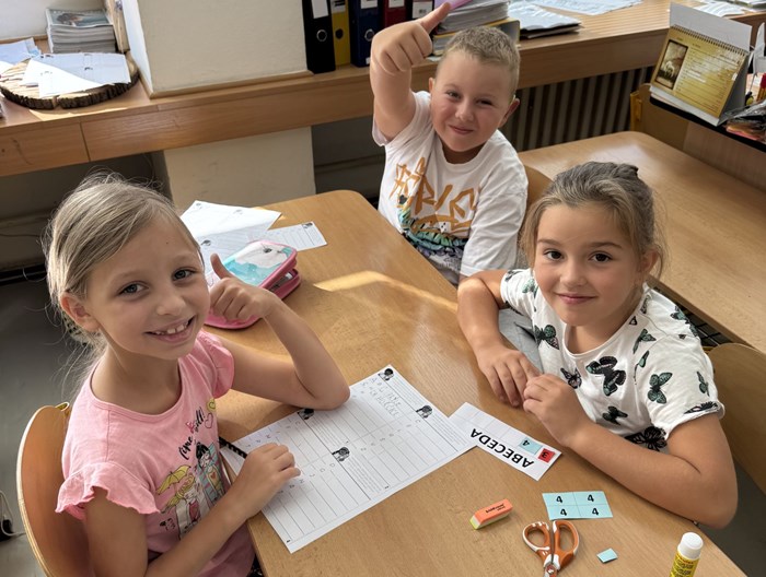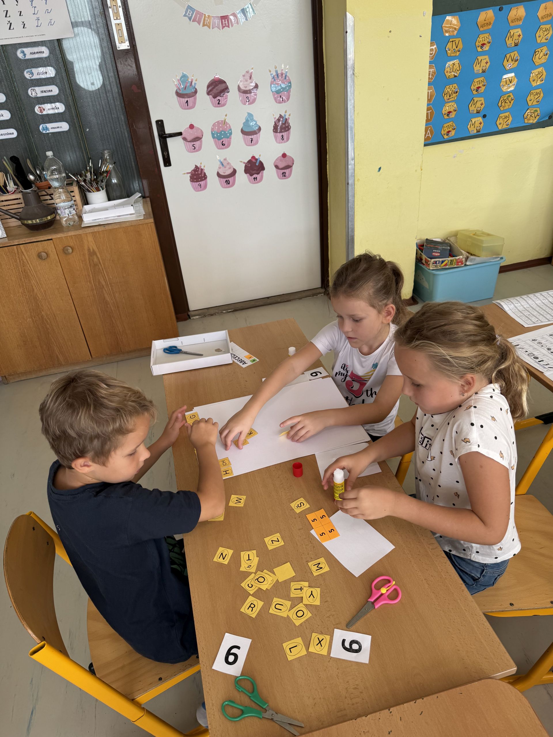 Další úkol zahrnoval rozstříhaná písmena. Děti musely správně nalepit jednotlivá písmena podle pořadí abecedy. Tato aktivita je nejen bavil, ale také podpořila jejich týmovou spolupráci.