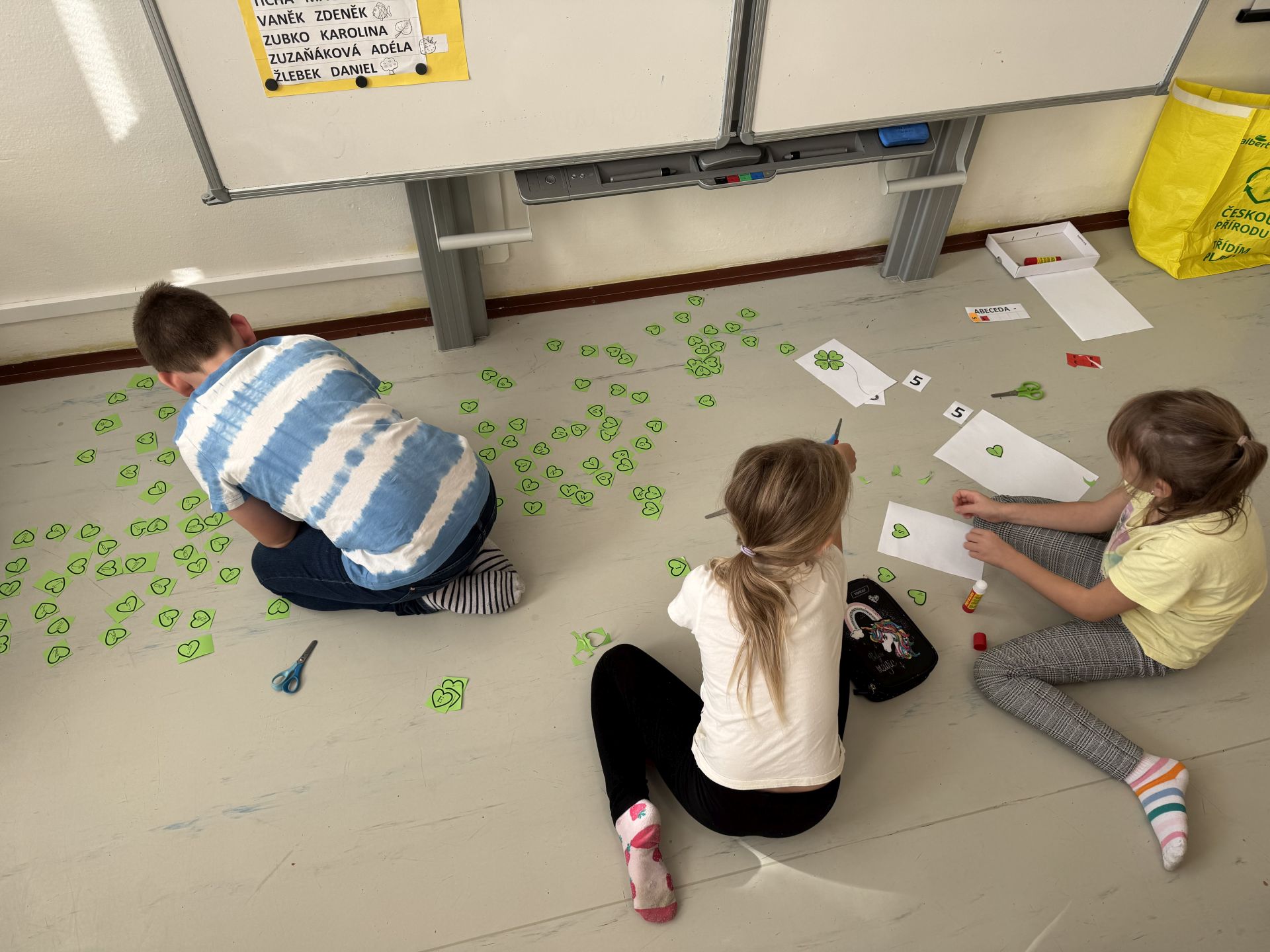Na prvním stanovišti děti hledaly velká tiskací a psací písmena, stejnému jako malá písmena. Poté tyto čtyři písmena slepily dohromady čímž vznikl krásný čtyřlístek, který symbolizoval jejich úsilí.