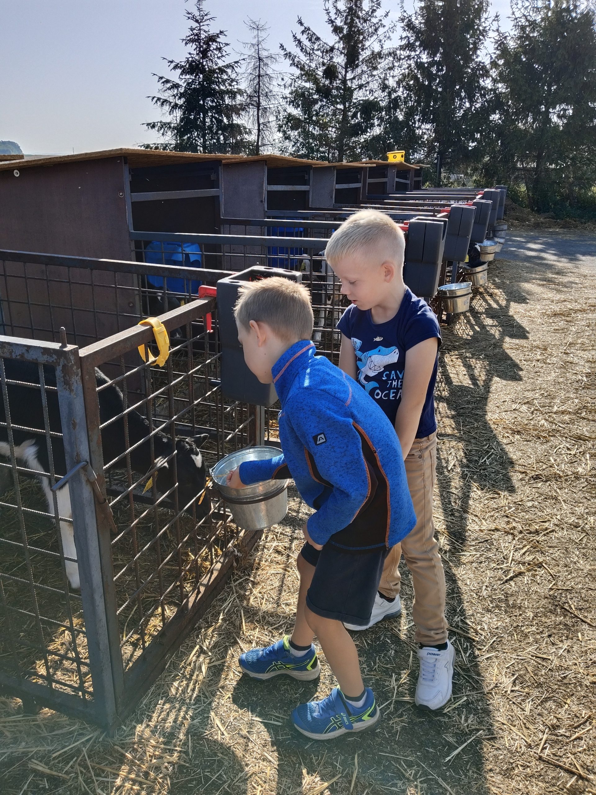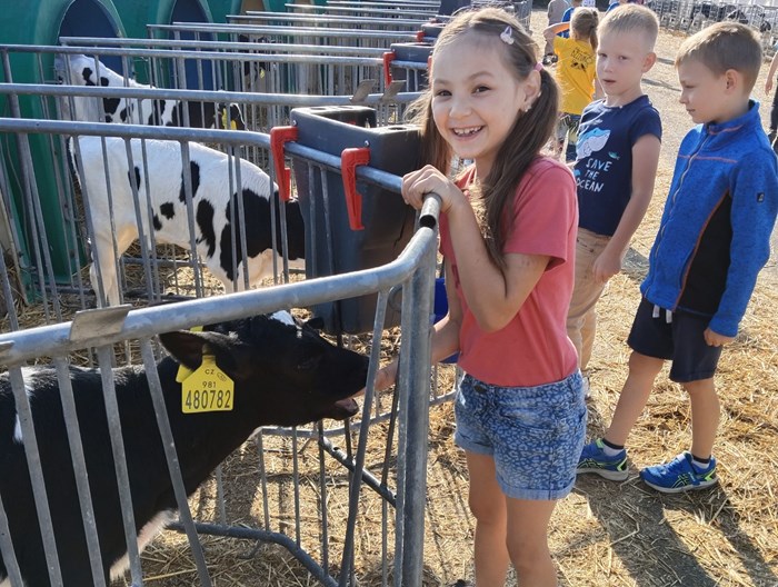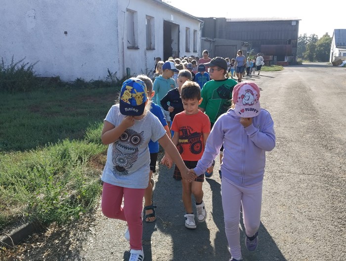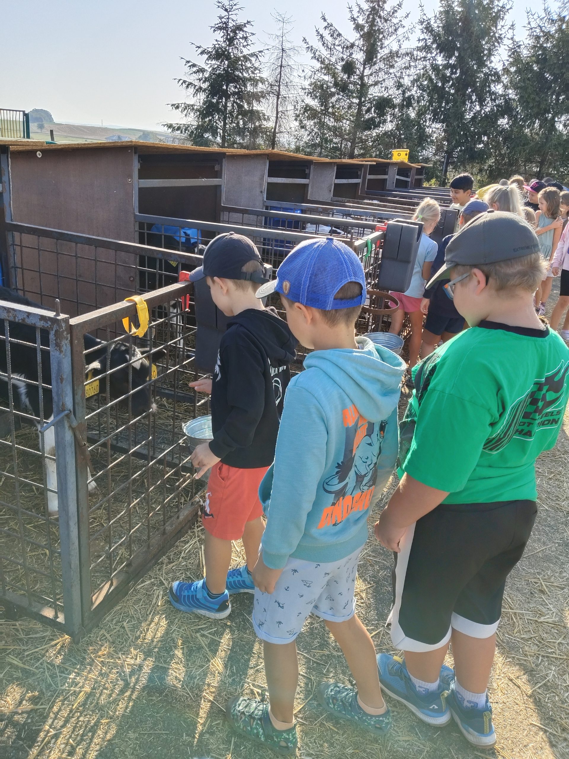 První týden výuky ukončili žáci nejnižších ročníků vycházkou za telátky na farmu v Suchdole nad Odrou.