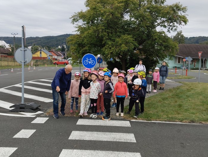 Páteční dopoledne prvňáci strávili na Dopravním hřišti v Odrách. Zopakovali si zásady bezpečného chování chodce v silničním provozu a seznámili se s některými pravidly pro cyklistu. Nabyté vědomosti si mohly děti vyzkoušet na dopravním hřišti, po kterém se pohybovaly na kolech, koloběžkách, pěšky. Odměnou jim byla projížďka speciálním elektromobilem.