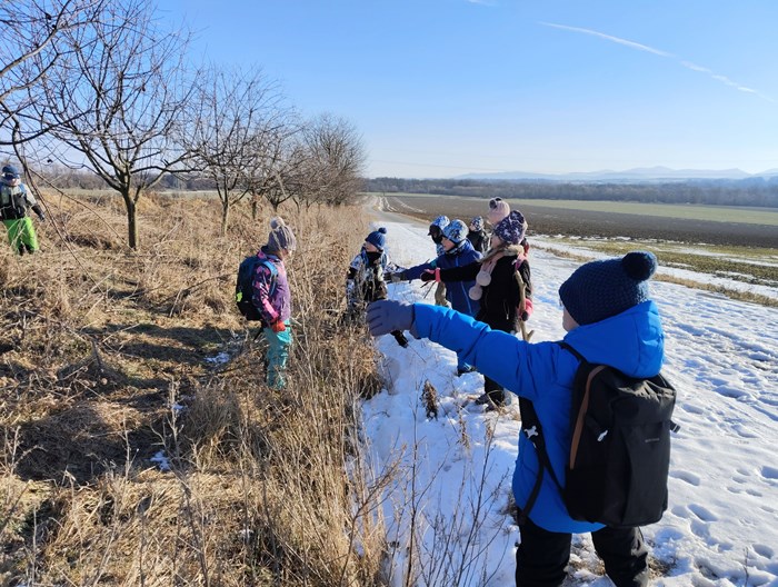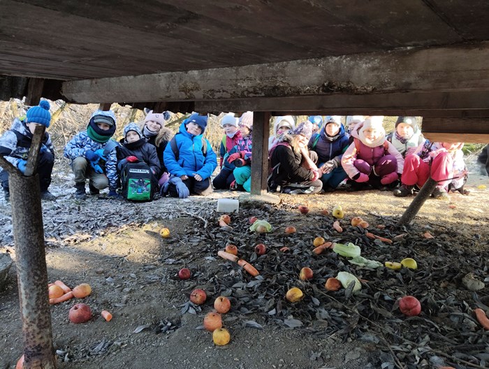 Prvňáci přinesli ovoce, zeleninu, kaštany. Od pana myslivce Tomáše Richtra jsme dostali kamennou sůl, oves s kukuřicí a vydali jsme se nakrmit lesní zvířátka. Cesta byla malinko náročnější, protože foukal studený vítr, ale děti byly dobře oblečeny, vybaveny termoskami s teplým čajem a sílu větru zmenšovaly paprsky sluníčka. Strávili jsme čas sledováním a rozeznáváním stop, vyprávěním, překonáváním terénu, poznáváním okolí Suchdolu.