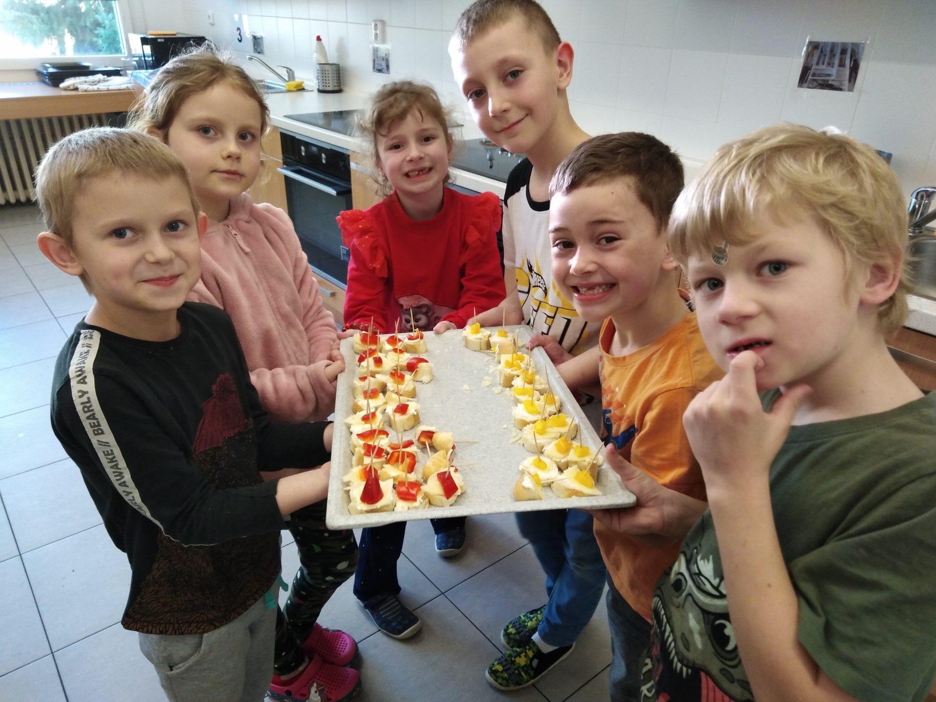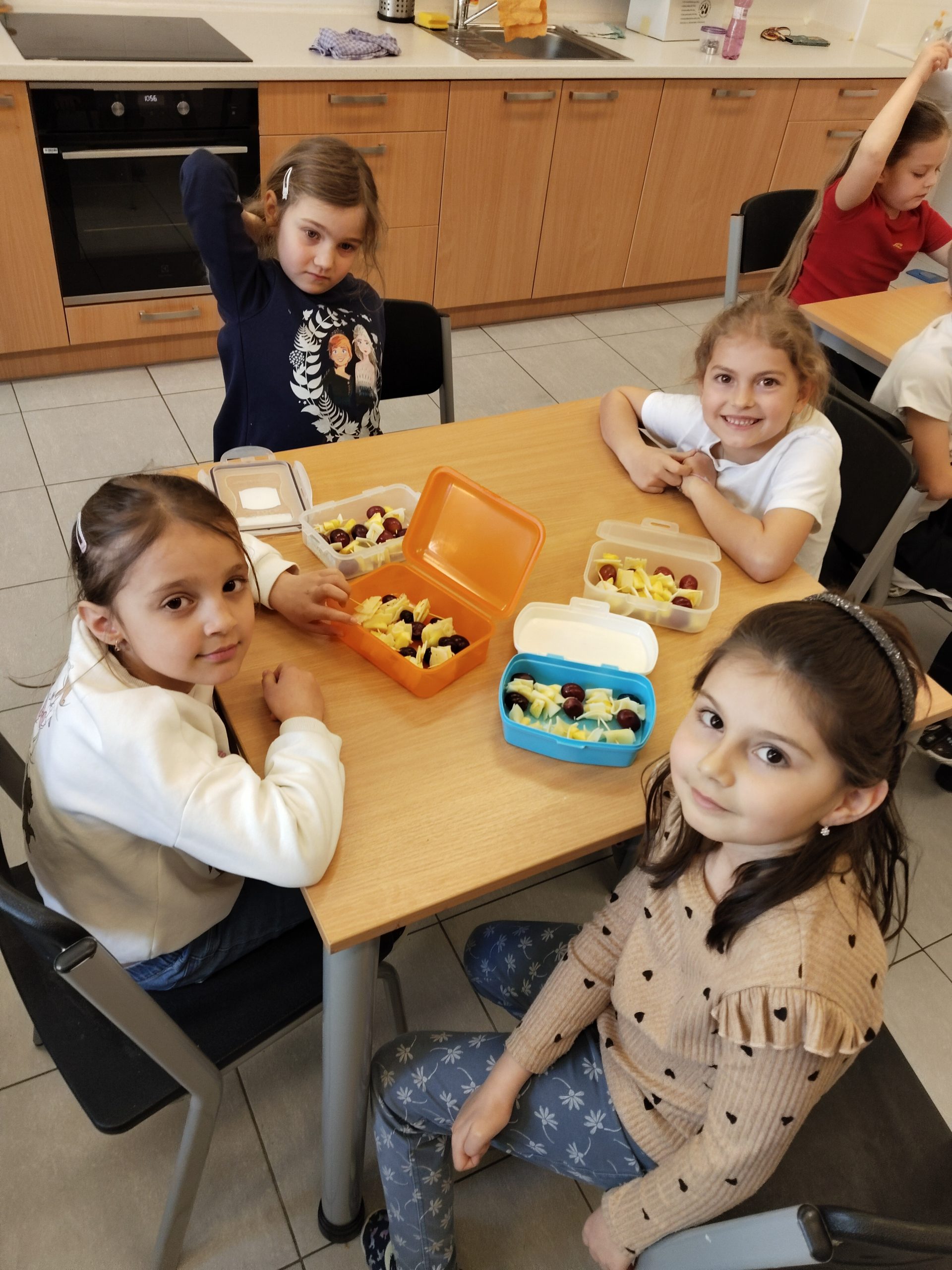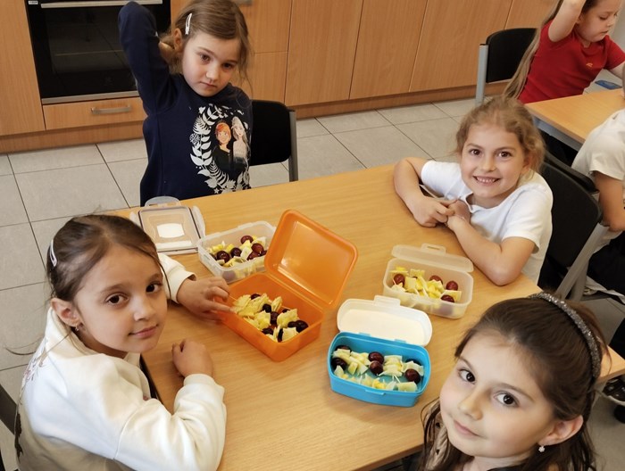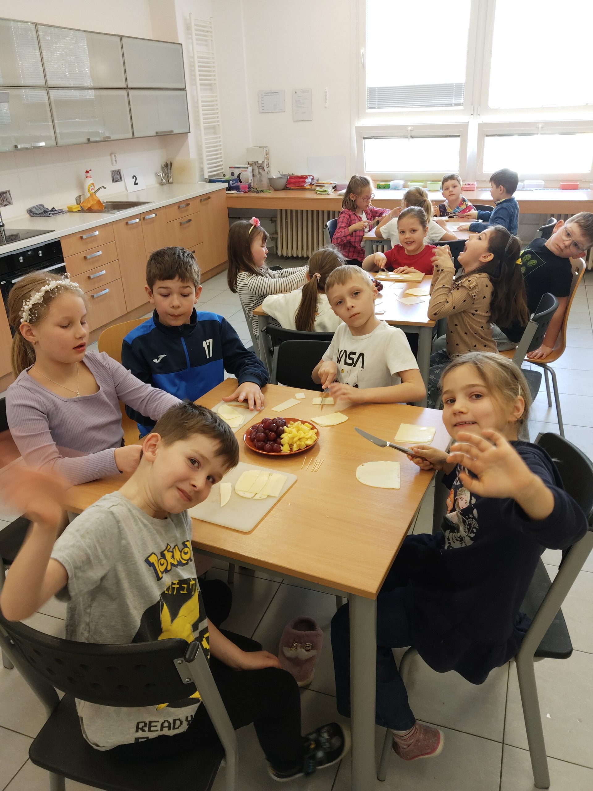 Minulý týden žáci prvních tříd v rámci projektu Mléko do škol dostali k ochutnání několik druhů kravských a kozích sýrů. Rozlišovali vlastnosti sýrů podle vzhledu, vůně, chuti, … Zhlédli výukové video o výrobě sýrů a zpracování mléka. Nejatraktivnější činností pro děti byla příprava sýrově-ovocných jednohubek, špízů. Někteří žáci se udrželi a zvládli donést i domů na ochutnání.